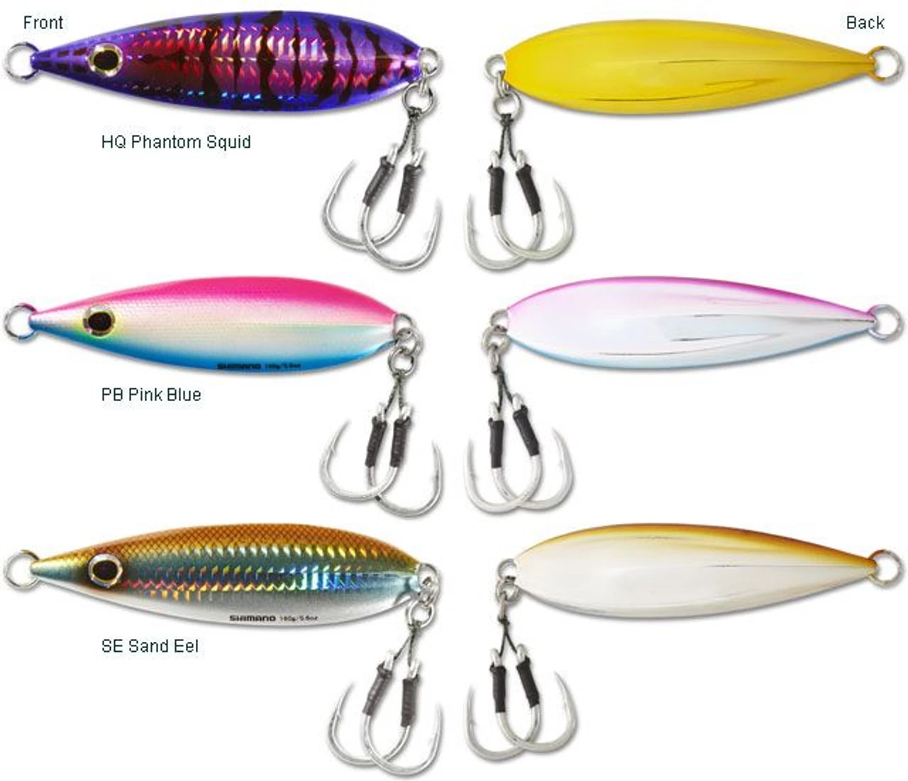 Shimano Butterfly Flat-Fall Jigs are a totally new concept of the Butterfly Jigging technique. Drop the jig down to the bottom or desired depth, then crank it up 30 feet and free spool. Alternatively, cast the jig and let it fall while free spooling. Wait for the bite, then jerk and repeat. The center balanced jig falls with a wobbling action in a horizontal position, keeping it in the strike zone longer than the ordinary Butterfly jig.