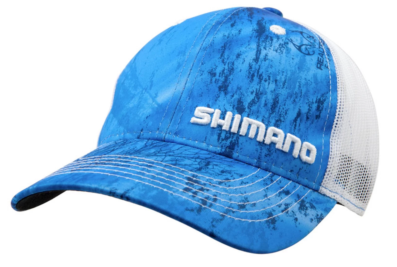 Shimano Realtree Fish Camo Trucker Hats are trucker style hats with double-knit front panels and mesh back panels for a cooling effect during those warmer days.
